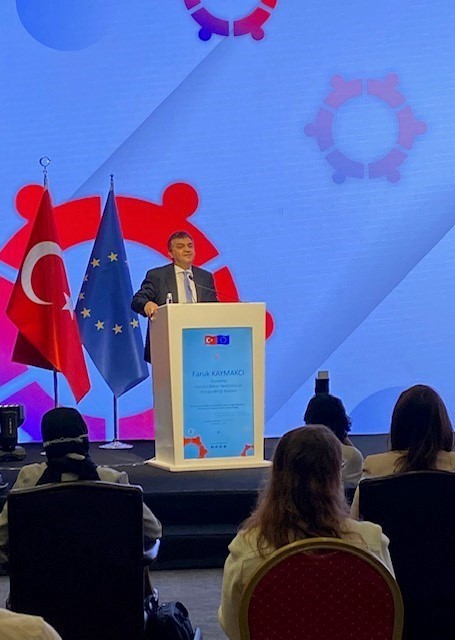 The hybrid event, which participants also attended online, began with opening speeches delivered by Deputy Minister of Foreign Affairs and President of the Directorate for EU Affairs Ambassador Faruk Kaymakcı, President of the Central Finance and Contracts Unit Dr. Hakan Ertürk, Head of the Economic and Social Development Section at the EU Delegation to Turkey First Counsellor Angel Gutierrez-Hidalgo, and Acting Director General of Family and Community Services at the Ministry of Family and Social Services Assoc. Prof. Dr. Olgun Gündüz.